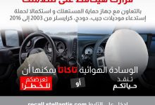 حماية المستهلك: استدعاء سيارات جيب وكرايسلر موديلات 2003–2016 بسبب عيب في الوسائد الهوائية “تاكاتا”