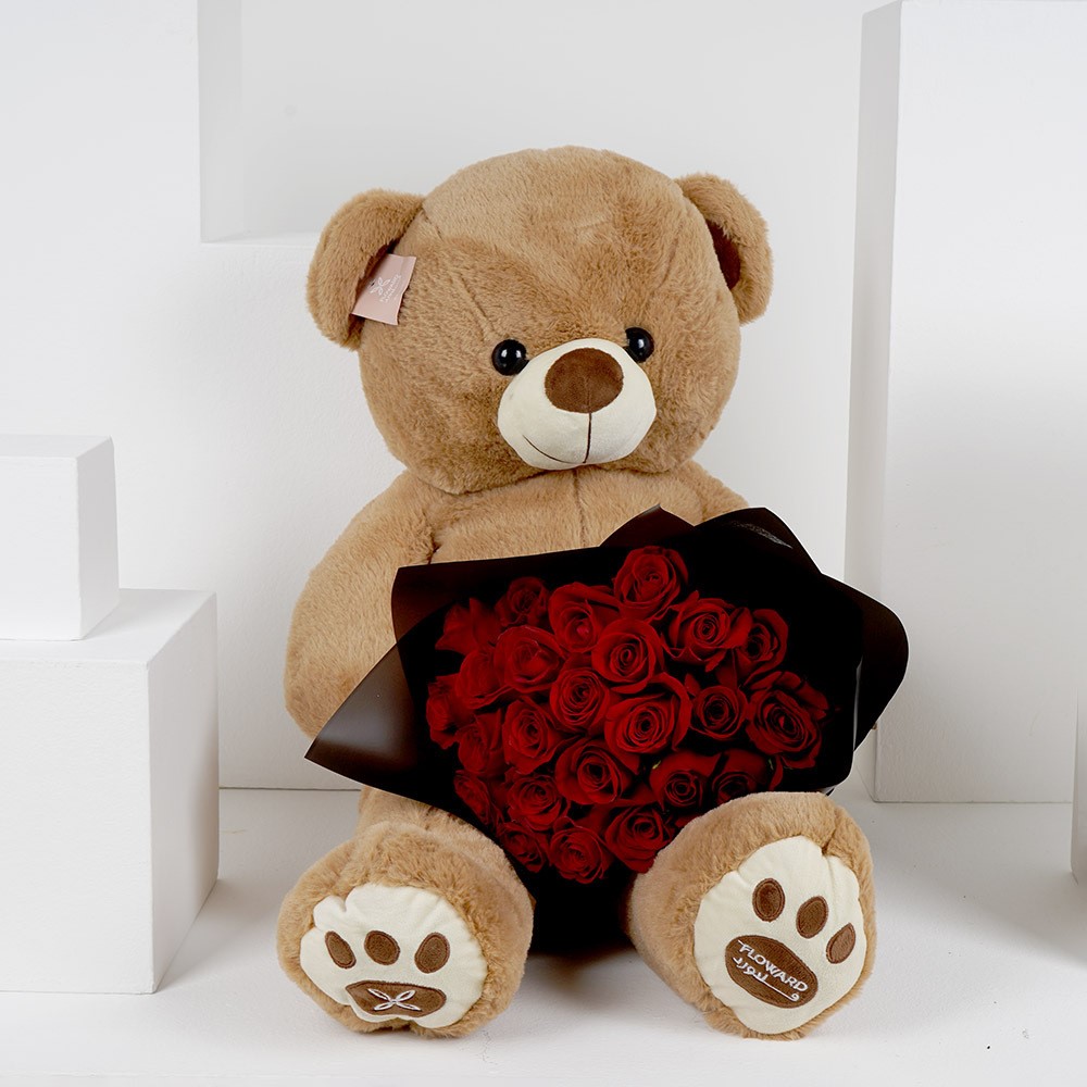 الشيء الوحيد الأفضل من الورود الحمراء في يوم الفالنتاين هو باقة رائعة مع دمية دب كبيرة للتعبير عن حبك.