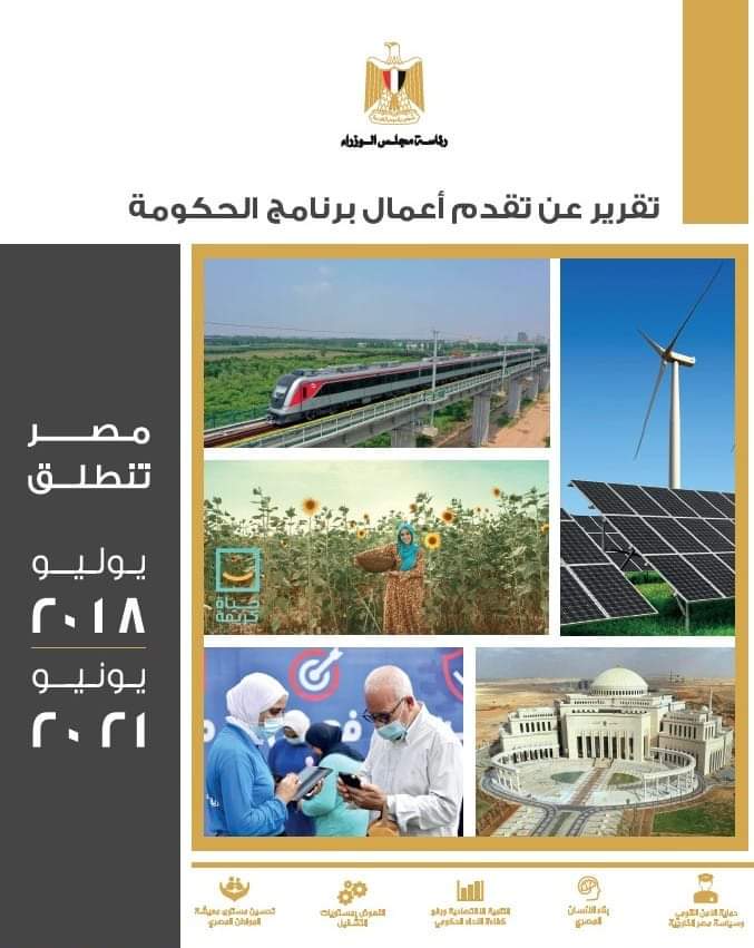 قدم مجلس الوزراء، اليوم، تقريرا مفصلا لمجلسي النواب والشيوخ حول تقدم أعمال برنامج الحكومة، خلال الفترة من يوليو 2018 حتى يونيو 2021، تحت عنوان “مصر تنطلق”، والذي يرصد ما تم تحقيقه من أهداف، وكذا ما تم إنجازه من محاور مختلفة تسعى الحكومة إلى تنفيذها من خلال برنامجها، الذي تم تقديمه إلى البرلمان ومنحت به الثقة في يوليو 2018.