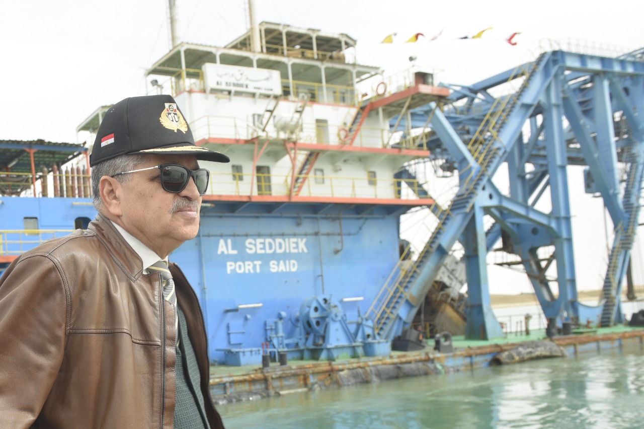 ثم تابع رئيس الهيئة أعمال التكريك بموقع مشروع التوسعة والتعميق من الكم ١٣٢ إلى الكم ١٦٢ ترقيم قناة والتي بلغت ٣,٥ مليون متر مكعب من الرمال المشبعة بالمياه.