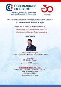 تناقش غرفة التجارة والصناعة الفرنسية يوم الأربعاء ١٦ مارس الجاري قضية هامة تخص الضرائب ومستقبلها في العالم ، وما يصاحب هذا المستقبل من تغيرات جذرية في ممارسة العمل الضريبي . يتحدث في الندوة الاستاذ عمرو المنير نائب وزير