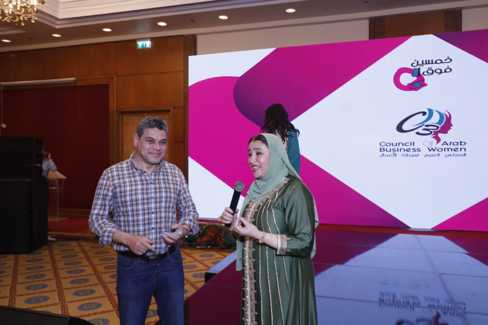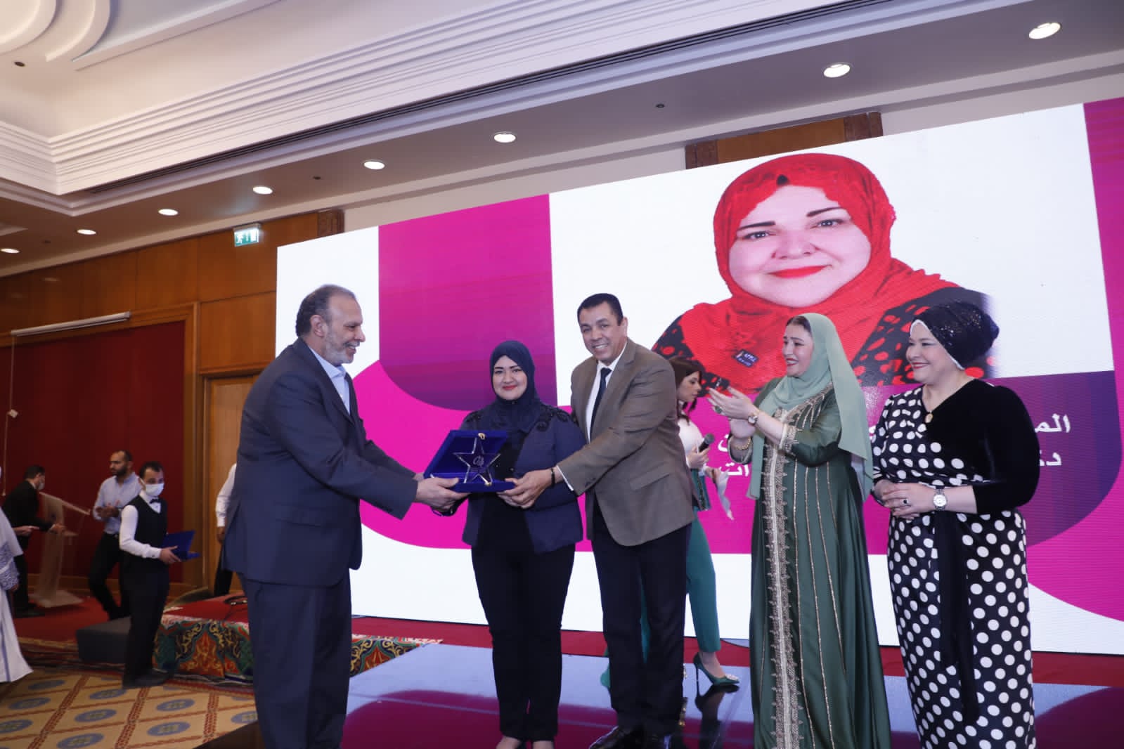 وكرمت رئيسة المجلس العربي لسيدات الاعمال، كل من الإعلامية نور الصواف، واسم المرحومة الدكتورة جيهان محمد الحفناوي دكتورة بأكاديمية السادات للعلوم الادارية، وهدي نصر عبيد نائب رئيس مجلس ادارة شركه الفيحاء للاستثمار العقاري والتنمية، والدكتورة حنان محمد موسى وكيل ادارة الهرم التعليمية، والسفيرة نجوى ابراهيم على رئيس مؤسسة المرأة المصرية والافريقية للتنمية والخدمات ورئيسة المعهد الأفريقي الدولي التابع للبرلمان الأوروبي للسلام ببروكسيل ورئيسة مكتب مصر في منظمة الأمل الدولية التابعة للأمم المتحدة، والدكتورة هالة عدلي حسين رئيس شركة بيومصر للصناعات الدوائية الأمين العام لاتحاد قيادات المرأة العربية، ووفاء زكي الغزالي الكاتبة الصحفية بأخبار اليوم ومدير عام للمركز الاعلامي العربي، وحنان حسني كساب المحامية بالنقض والامين العام المساعد للمرأة العربية، والدكتورة امال ابراهيم محمد حمد استشاري علاقات اسرية والمدير الاقليمي لسبارك للتدريب والتطوير ومدير المسؤولية المجتمعية لجامعة بدر ومدير المسؤولية المجتمعية لمؤسسة صحة وحياة ورئيس مهرجان المرأة العربية للإبداع ورئيس لجنة المرأة للاتحاد العربي للتنمية المستدامة ونجوى كمال العجمي نائب رئيس الإدارة المركزية للقطاع العلاجي بوزارة الصحة، ونانيس طه الفروجي رئيس مجلس اداره شركه جولد سيتي- مطور عام وخبير استراتيجي اداره الازمات وحفظ وبنيه السلام والهجرة غير الشرعية لأفريقيا، والدكتورة سميرة العشيري رئيس مؤسسة ابناء المغرب بمصر للتنمية وعضو مجلس سيدات الأعمال، وهويدا عوض أحمد كاتب ومحلل سياسي بصوت بلادي بأمريكا وسفير النوايا الحسنة للولايات المتحدة الامريكية وعضو اتحاد كتاب مصر وعضو المؤسسة الافريقية للدراسات والتنمية، والدكتورة نهى عبد العاطي حامد مدير عام الامانة الفنية لمجلس ادارة هيئة المجتمعات العمرانية الجديدة وأمين سر مجلس الادارة بمكتب الوزير، وهالة حلمي هلال عضو منتدب لشركة وادي النيل نائب رئيس مجلس ادارة شركة فيوتك، ومايسة ابراهيم زيدان شريك الضرائب بمكتب ارنست اند يونج، وأمل حسن صالح مديرعام غرفة مقدمي خدمات الرعاية الصحية باتحاد الصناعات المصرية، وأماني فتحي موسى الكاتبة، والمطربة الفنانة فاطمة عيد، والاعلامية عبير سعيد احمد ابو طالب المذيعة بالقناة الفضائية المصرية، والإعلامية حنان موج المذيعة بقناة صدى البلد، والدكتورة زينب صلاح السخاوي