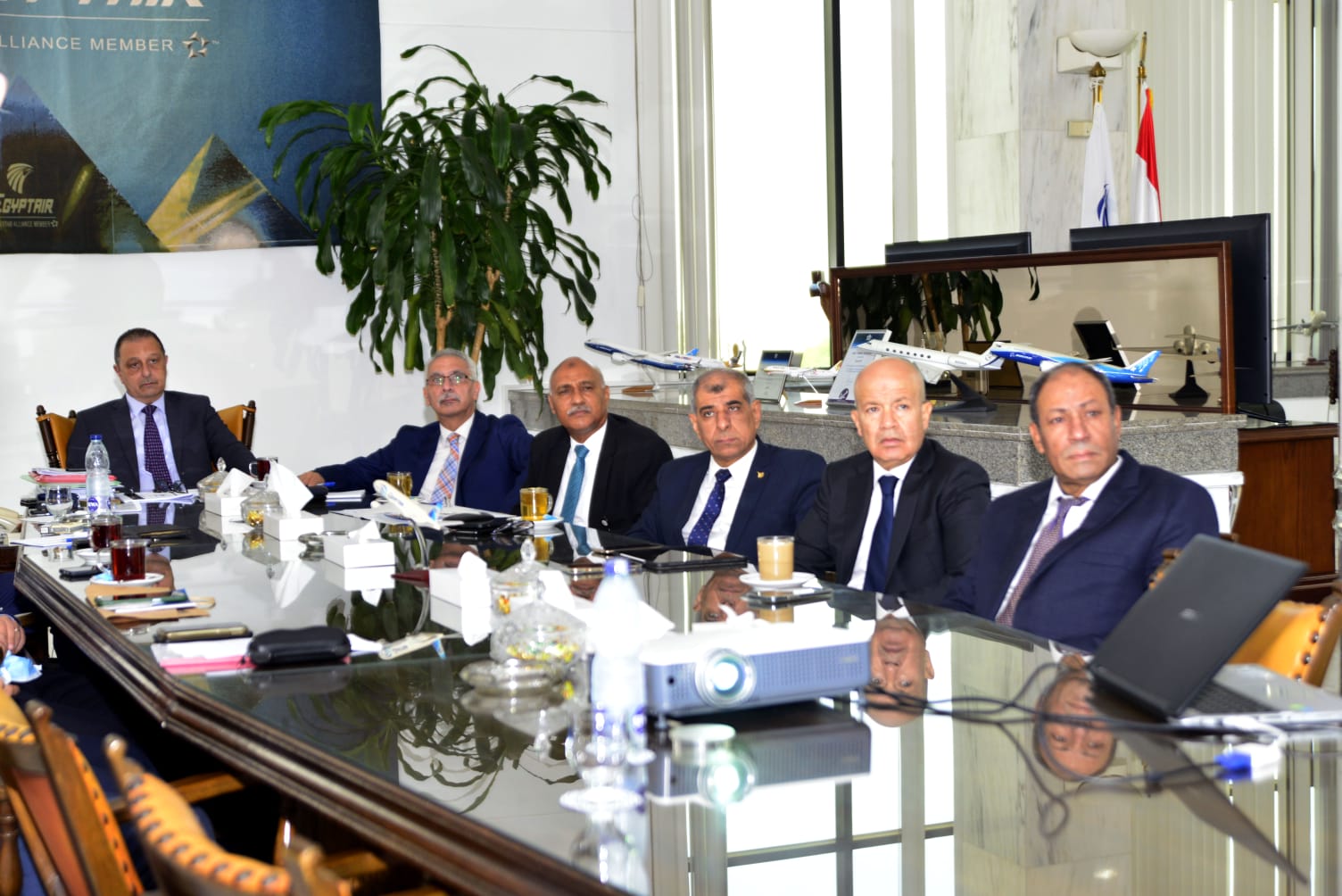 كما تم عرض خطة التنمية المستدامة للشركة القابضة والشركات التابعة للإستعداد والتحضير لمؤتمر المناخ والتي تعتمد علي أربع مراحل لترشيد استهلاك الكهرباء والماء والوقود وتحديد البصمة البيئية لجميع العمليات والأنشطة والبرامج التدريبية المتخصصة من الجهات المعتمدة والإجراءات التي تم إتباعها وأدت إلي خفض الإنبعاثات وترشيد الوقود وفقًا للإجراءات المتبعة عالميًا من الإتحاد الدولي للنقل الجوي في ترشيد الوقود خلال الرحلات وكذلك خفض البلاستيك أحادي الإستخدام علي الرحلات المتجهة للإتحاد الأوروبي وخلال مؤتمر المناخ.