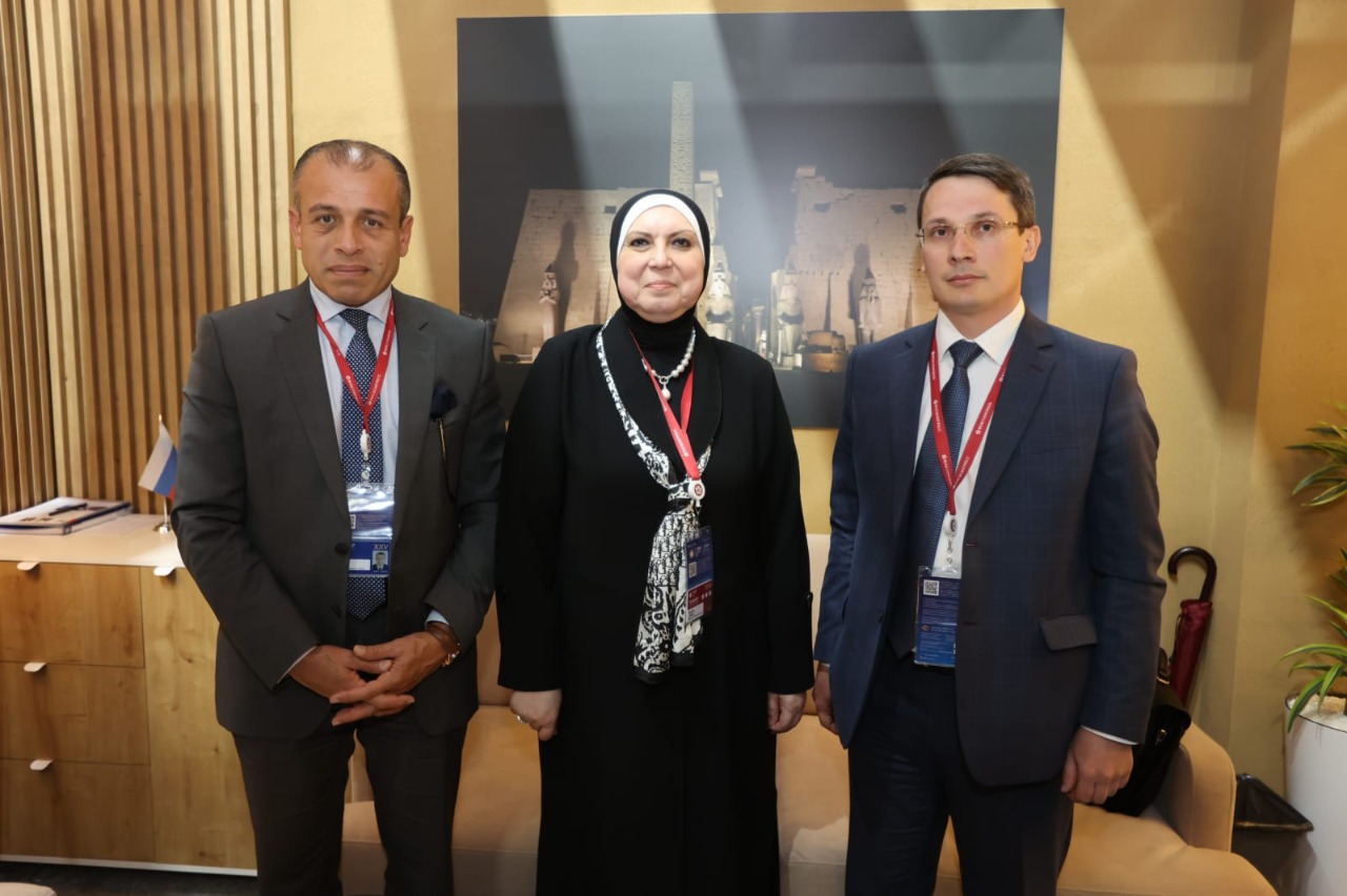 جاء ذلك خلال جلسة المباحثات الموسعة التي عقدتها الوزيرة مع السيد/ أندريه سليبنيف وزير تجارة الاتحاد الاقتصادي الأوراسي وذلك فى ختام مشاركة الوزيرة فى فعاليات منتدى سانت بطرسبرج الاقتصادى الدولى، وقد شارك فى اللقاء السفير نزيه النجارى سفير مصر بموسكو والوزير مفوض تجارى يحيى الواثق بالله رئيس التمثيل التجارى والسيد /، حاتم العشرى مستشار الوزيرة للاتصال المؤسسى والوزير مفوض تجارى ياسر مصطفى رئيس المكتب التجارى بموسكو .