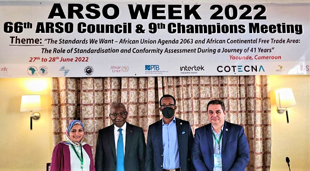 تشارك مصر ممثلة في الهيئة المصرية العامة للمواصفات والجودة في أعمال أسبوع المنظمة الأفريقية للتقييس (ARSO) والتى تعقد بالعاصمة الكاميرونية ياوندى خلال الفترة من 27 يونيو الى 1 يوليو 2022 ، وذلك تحت شعار ” المواصفات التي نريدها -أجندة الاتحاد الأفريقي 2063 ومنطقة التجارة الحرة القارية الأفريقية: “دور التقييس وتقييم المطابقة خلال رحلة مدتها 41 عامًا” .