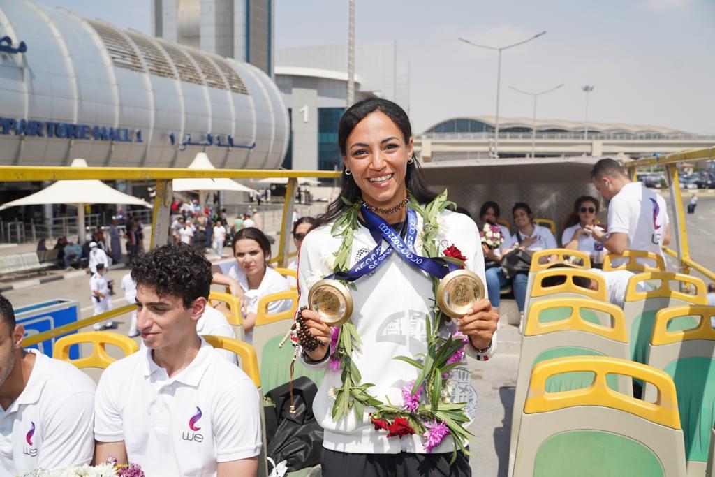 استقبال حافل من المصرية للاتصالات WE للبطلة المصرية بسنت حميدة بمطار القاهرة