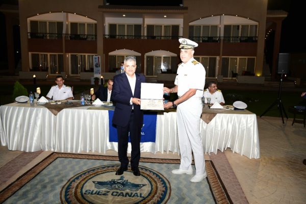 وقام الفريق خلال الحفل بتكريم ١٤ مرشداً من أصحاب الكفاءات وذوي مسيرة العطاء المتميزة في خدمة حركة الملاحة في قناة السويس.