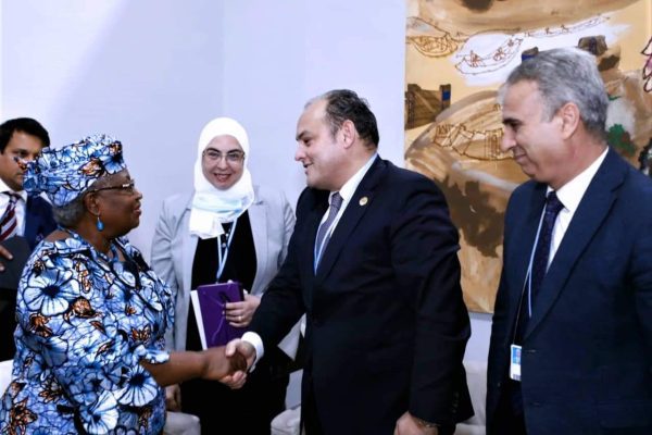 جاء ذلك خلال جلسة المباحثات التى عقدها الوزير مع السيدة/ انجوزي إيويلا مدير عام منظمة التجارة العالمية وذلك على هامش فعاليات مؤتمر الأمم المتحدة للمناخ COP27 المنعقد حالياً بمدينة شرم الشيخ، وقد شارك فى المباحثات السيد /ابراهيم السجينى مساعد الوزير للشئون الاقتصادية والوزير مفوض تجارى يحيى الواثق بالله رئيس جهاز التمثيل التجارى والمهندس محمد عبد الكريم رئيس الهيئة العامة للتنمية الصناعية والسيدة/ ايمان رفعت رئيس الادارة المركزية لمنظمة التجارة العالمية بقطاع الاتفاقيات والتجارة الخارجية .