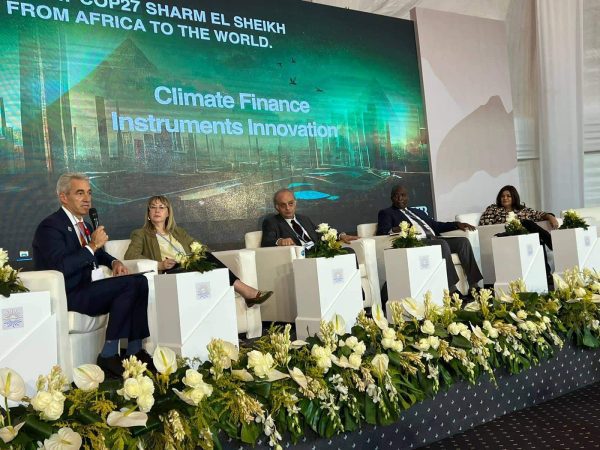 وعقد CIB جلسة ثانية في المنطقة الخضراء بقمة المناخ COP27 بعنوان “الآليات التمويلية المبتكرة لتمويل مشروعات التكيف والتخفيف من تغير المناخ “، والتي ناقشت طرح آليات تمويلية مبتكرة ومناسبة للدول الإفريقية مثل طرح السندات الخضراء والزرقاء، والصكوك.