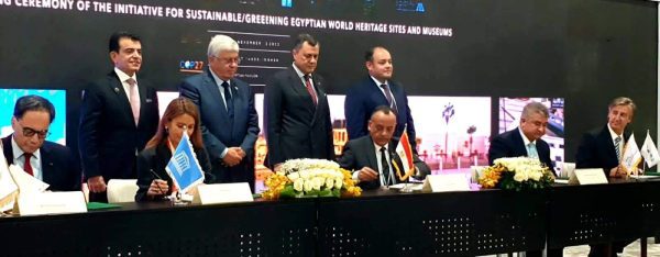 شهد المهندس/ أحمد سمير وزير التجارة والصناعة والدكتور ايمن عاشور وزير التعليم العالى والسيد / احمد عيسى وزير السياحة والاثار توقيع اتفاق تعاون بين مركز تحديث الصناعة وكل من المجلس الاعلي للاثار وبرنامج الأمم المتحدة الإنمائي واليونسكو والايسسكو لنشر وتركيب نظم خلايا شمسية في عدد من المواقع السياحية والمتاحف التي تشمل المتحف المصري الكبير ومتحف شرم الشيخ ومتحف الغردقة ومركز زوار منطقة الاهرام،