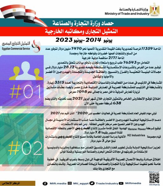– إطلاق الموقع الإلكتروني الخاص بالتمثيل التجارى بعد تحديثه والذي يضم 638 شركة مصرية حتى الآن.