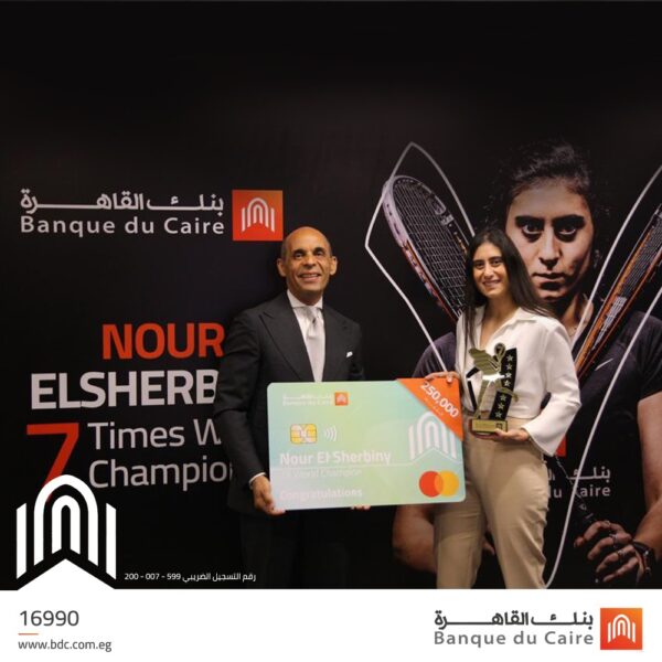 كرّم بنك القاهرة نور الشربينى بطلة مصر فى الاسكواش والحاصلة مؤخراً على بطولة كأس العالم للمرة السابعة فى تاريخها والخامسة على التوالى، والعودة من جديد كالمصنفة الأولى عالمياً وفقاً لتصنيف الإتحاد الدولى للأسكواش.
