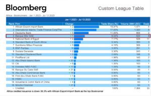 حصل بنك مصر مؤخراً على المركز الأول على مستوى جمهورية مصر العربية في تسويق القروض المشتركة خلال النصف الأول من عام 2023، وذلك وفقاً لمؤسسة بلومبرج العالمية والمتخصصة في مجال المال والبنوك على مستوى البنوك المحلية، كما حافظ بنك مصر على مركزه المتقدم والريادي على مستوى القارة الإفريقية، حيث حصل البنك على المركز الرابع  كأفضل مسوق للقروض المشتركة على مستوى قارة إفريقيا، ويأتي ذلك التتويج بعد أن قام البنك بإتمام عدد 8 قروض مشتركة بقيمة إجمالية حوالي 966 مليون دولار قام فيها البنك بدور مسوق التمويل (Bookrunner).