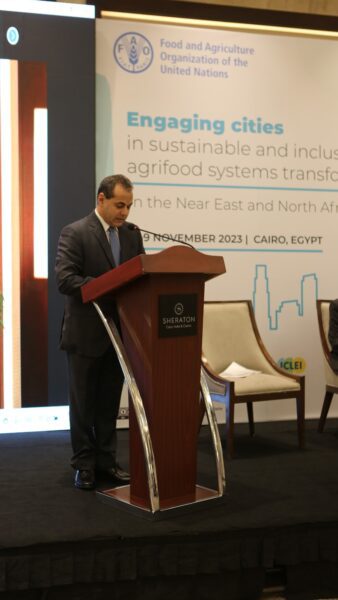 نيابة عن السيد القصير وزير الزراعة واستصلاح الأراضي شارك د سعد موسى المشرف على العلاقات الزراعية الخارجية بالوزارة في ورشة العمل الاقليمية حول ” اشراك المدن فى تحويل نظم الاغذية الزراعية المستدامة والشاملة فى منطقة الشرق الادنى وشمال أفريقيا والتى نظمها منظمة الأمم المتحدة للاغذية والزراعة الفاو بحضور اللواء هشام امنة وزير التنمية المحلية والدكتور عبد الحكيم الواعر المدير العام المساعد للفاو والممثل الاقليمى للمكتب الاقليمى للشرق الادنى و شمال افريقيا وبعض السادة ممثلى دول الاقليم وممثلى المنظات الدولية