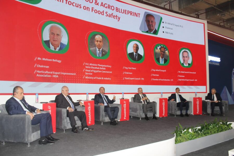 وعقدت جلسة نقاشية تحت عنوان ” توقعات النمو بقطاع الصناعـات الغـذائية والحاصلات الزراعية .. بالتركيز على ملف سلامة الغذاء ” وقد شارك فى الجلسة كل من المهندس هانى برزى رئيس المجلس التصديرى للصناعات الغذائية ، والوزير مفوض تجارى يحيى الـواثق بالله رئيس جهـاز التمثيـل التجارى ، والمهندس اشرف الجزايرلى رئيس غرفة الصناعات الغذائية ، والنائب عبد الحميد الدمرداش رئيس المجلس التصديرى للحاصلات الزراعية ، والسيد/ محسن البلتاجى رئيس جمعية هيا لتطوير وتنمية الحاصلات البستانية ، و أدار الجلسة دكتور اشرف السيد رئيس شركة النيل للفاكهة .