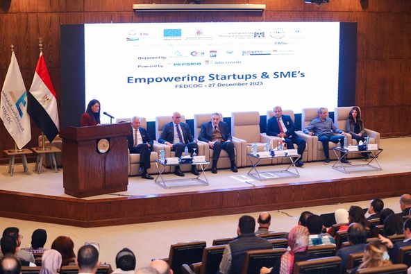 جاء ذلك خلال مشاركتها في الجلسة النقاشية التي عقدها الاتحاد العام للغرف التجارية، حول تمكين الشركات الناشئة والمشروعات الصغيرة والمتوسطة ومتناهية الصغر، بحضور السيد/ أحمد الوكيل، رئيس الاتحاد، والدكتور علاء عز، الأمين العام للاتحاد، والسيدة/ ميرنا عارف، مدير عام شركة مايكروسوفت مصر، والدكتور خالد حنفي، أمين عام اتحاد الغرف العربية، والعديد من ممثلي شركات القطاع الخاص ومجتمع الأعمال، والشركات الناشئة،والمشروعات الصغيرة والمتوسطة.