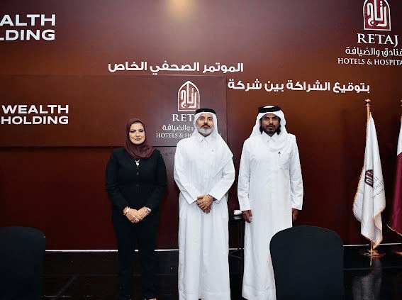 أعلنت شركة ويلث هولدينج القابضة عن توقيع عقد شراكة استراتيجية مع رتاج العالمية للفنادق والضيافة، بحضور المهندسة سهير كريم رئيس مجلس إدارة الشركة، والشيخ نايف بن عيد آل ثاني رئيس مجلس إدارة مجموعة رتاج، في خطوة تهدف إلى دعم التوسع العقاري والسياحي في مصر خلال الفترة المقبلة.