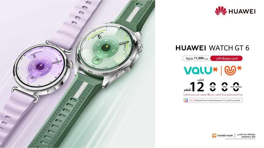 ولتحسين إمكانية الوصول بشكل أكبر، يمكن للعملاء طلب ساعة HUAWEI WATCH GT 6 مسبقا عبر ڤاليو بدون رسوم أو دفعات مقدمة، مع خطط دفع مرنة بدون فوائد واشتراك لمدة شهر مجاناً لمجموعة واجهات الساعة بقيمة 259 جنيه ،هذا العرض ساري من 2 أكتوبر حتى 30 نوفمبر على سعر الكاش في متجر هواوي الإلكتروني.