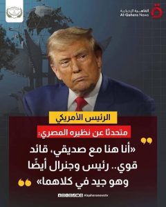 ترامب في اسرائيل لم يذكر ولا كلمه او مجرد تلميح علي حل الدولتين الرئيس السيسي٠من واقع خبرته ٠كسر القواعد التي حاول ترامب في الكنيست الترويج لها ٠سقطات ترامب وسخريته ٠ادركها الرئيس المصري واشتبك معها .لانه تفهم ودرس اسلوب ترامب ٠ورسائله بانواعها ٠