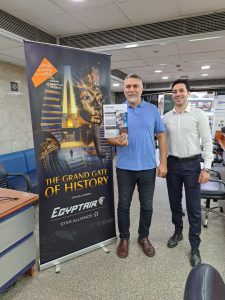 وامتدت الحملة إلى بث فيلم ترويجي ووضع بانرات دعائية داخل استراحات مصر للطيران في مطار القاهرة الدولي، بالإضافة إلى مكاتب الشركة في مصر ومختلف دول العالم، ليكون حلقة تعريفية متكاملة لكل زائر يبدأ رحلته من الجو وصولًا إلى أرض المتحف، بما يعزز حضور الحملة على نطاق واسع ويضمن وصول رسالتها إلى المسافرين والسائحين الدوليين، فضلًا عن استقبال ونقل العديد من الوفود الرسمية المشاركة في الافتتاح عبر خطوطها الجوية.
