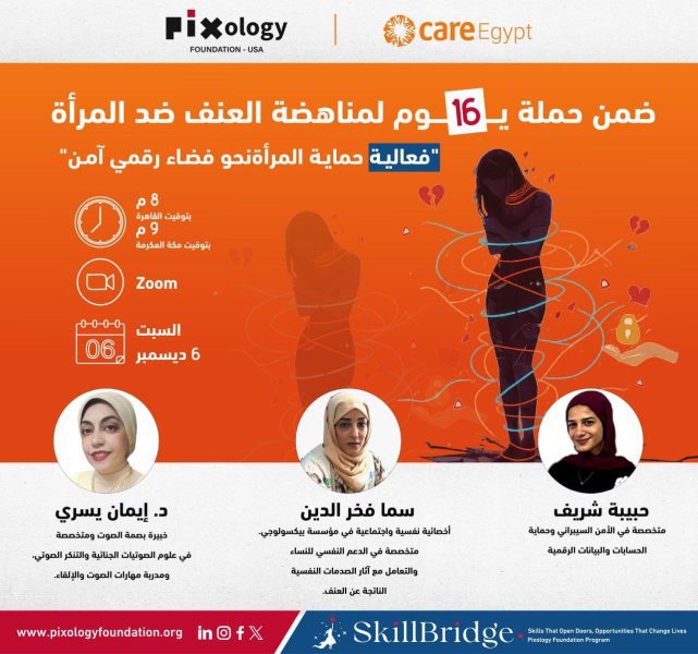 ضمن حملة الـ16 يوم لمناه٨ه‍ددضة العنف ضد المرأة تقدم مؤسسة بيكسولوجي للسلام والتنمية وحقوق الإنسان وبالشراكة مع مؤسسة كير مصر للتنمية
