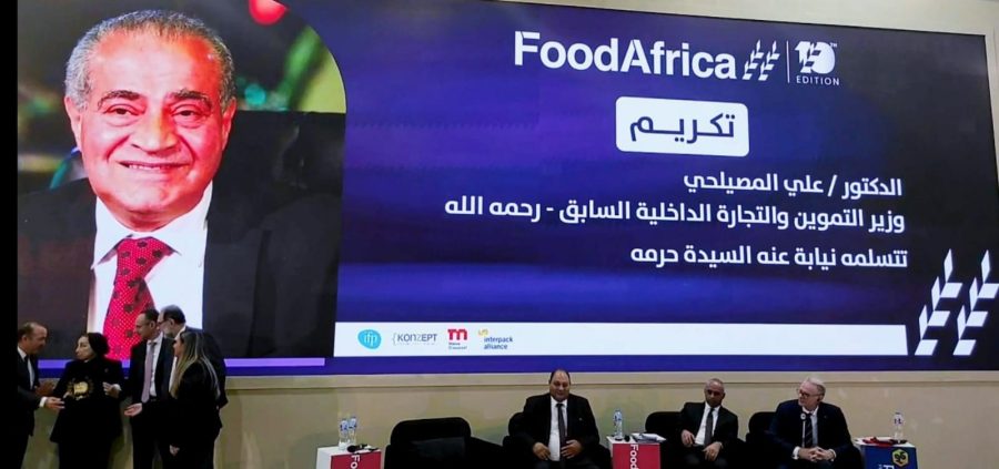 فى لمسة وفاء من شركة كونسبت المنظمة لفعاليات معرض فوود افريكا، فقد تم تقديم درع تكريم بإسم الوزير الراحل الدكتور على المصيلحى وزير التموين والتجارة الداخلية السابق وذلك تقديراً وعرفاناً بالدعم الكبير الذى قدمه الوزير الراحل لمعرض فوود افريكا منذ انطلاقه ، وقد تسلمت الدرع السيدة الفاضلة حرمه .