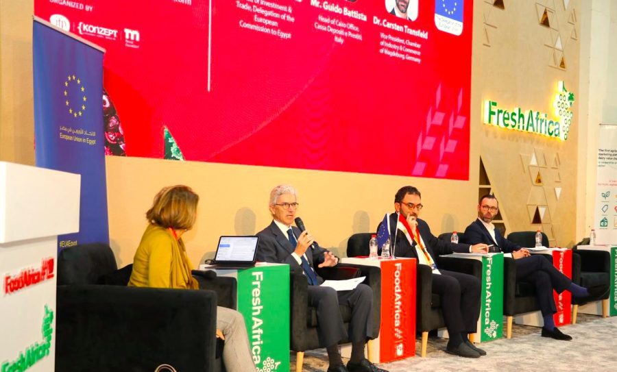 وقد عقدت الجلسة تحت عنوان ” برامج الاستثمار والبحث والابتكار الأوروبية في الأغذية والزراعة “، شارك فى الجلسة كل من السيد. نيكولاوس زيميس، رئيس قسم الاستثمار والتجارة، ببعثة الاتحاد الأوروبي بمصر، والسيد جويدو باتيستا، رئيس مكتب القاهرة، كاسا ديبوزيتي إي بريستيتي، إيطاليا ، والدكتور. كارستن ترانسفيلد، نائب رئيس غرفة الصناعة والتجارة في ماجديبورغ، بألمانيا ، أدارت الجلسة السيدة .دورا فياني، رئيسة، مؤسسة اقتصاد المعرفة / منصة بشاير.