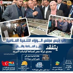 في إطار الزيارات الدورية التي يجريها الفريق مهندس/ كامل الوزير نائب رئيس مجلس الوزراء للتنمية الصناعية وزير الصناعة والنقل للمناطق الصناعية والمصانع للوقوف على سير العملية الإنتاجية وحل مشاكل المصانع، تفقد الوزير 3 مصانع متخصصة في الصناعات الهندسية بمدينة العاشر من رمضان، وقد رافق الوزير خلال الجولة الدكتورة/ ناهد يوسف رئيس هيئة التنمية الصناعية وعدد من قيادات وزارة الصناعة.