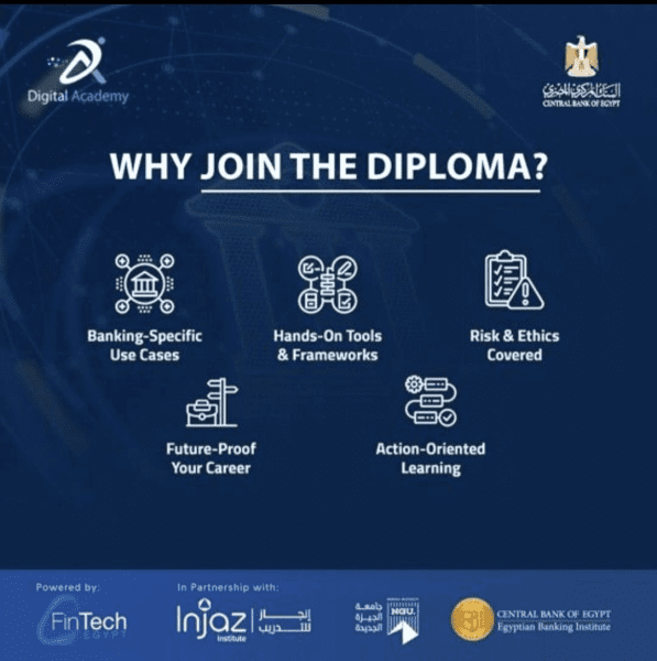 أعلن المعهد المصرفي المصري (EBI) فتح باب التقديم لبرنامج دبلومة الذكاء الاصطناعي للقطاع المصرفي (AI for Banking Diploma). الذي يهدف إلى تأهيل المتخصصين في مجالي البنوك والتمويل بالمعارف والمهارات الأساسية اللازمة للعمل في بيئة مالية مدعومة بتقنيات الذكاء الاصطناعي.