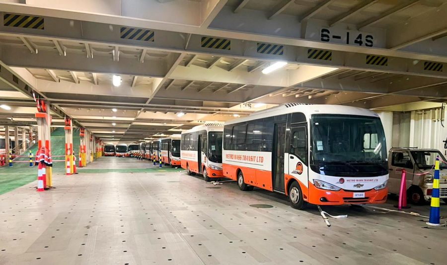 رصيف محطة تداول السيارات بميناء شرق بورسعيد يشحن 100 حافلة مُصنّعة محليًا على متن السفينة SUNSHINE ACE