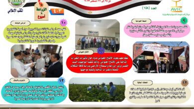 فتحى السايح أصدر مركز المعلومات الصوتية والمرئية، التابع لوزارة الزراعة واستصلاح الاراضي، “الانفوجراف الاسبوعي” في نسخته رقم ١٥٨ ، حول…
