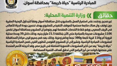 توضيح لشائعة: توقف تنفيذ المشروع القومي لتطوير القرى ضمن المبادرة الرئاسية “حياة كريمة” بمحافظة أسوان