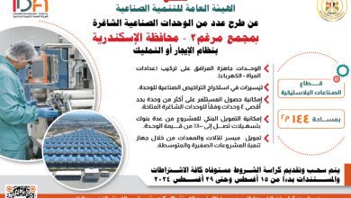 هيئة التنمية الصناعية تعلن طرح عدد من الوحدات الصناعية الجاهزة بمجمع مرغم ٢ بمحافظة الإسكندرية