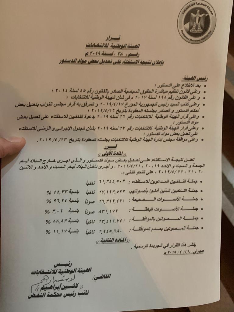 الوطنية للانتخابات: الموافقة على التعديلات الدستورية بنسبة 88.83%